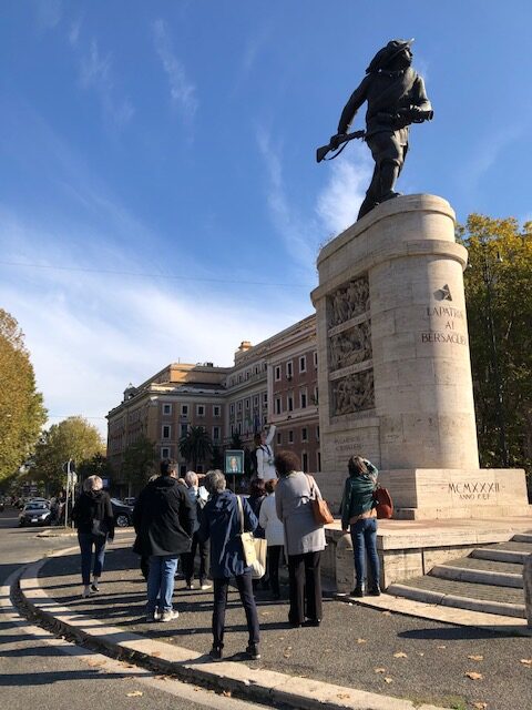 It was a beautiful warm November Sunday morning, as we gathered on the white steps under the stunning Bersagliere monument at Porta Pia. As we waited leisurely for our guide, Silvia, and other attendees to arrive, one couldn’t help ask “Why are the Bersaglieri always running?” With a bit of luck, we might find out!